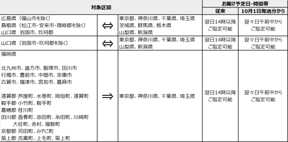 2.お届け日数の変更区間とお届け指定時間帯(参照:2022/9/20 ヤマトホールディングス公式サイト)
