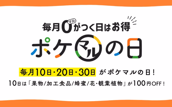本日10日はポケマルの日!果物、加工食品、蜂蜜、花・観葉植物が100円オフ♪
