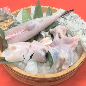 終了まで2日太田雄三注文から8~10日で発送天草とらふぐ身欠き+白子付(5~6人前)【数量限定】【期間限定】熊本県上天草市・とらふぐ身、アラ、皮約950g・ひれ酒用焼きひれ4枚16,977円 +送料1,600円
