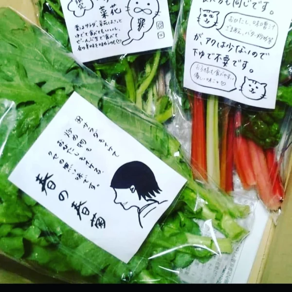 「貴方の野菜には何故絵が貼ってあるの?」と聞かれます。