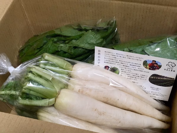 黒ボク土で育てた宮重大根の中抜き大根と大根葉をお届けします。 宮重大根は青首大根ルーツと言われており、江戸時代から栽培されていた青首大根です。 やまと農園ではその宮重大根を栽培期間中農薬・除草剤・化学肥料を使用せず、黒ボク土で栽培しています。黒ボク土はフカフカで粒が細かく、水はけがよいのに水もちも良い、特に根菜類の栽培に適している肥沃な土です。 成長すると80cmほどにもなる大根ですが、中抜き大根として小ぶりの小さいサイズでお届けします。小さくても、宮重大根の甘さや柔らかさは◎ この大きさ、意外と1人暮らしの食べ切りサイズや大根おろしとして、お子さんも食べやすい輪切り用にピッタリです!うちの2歳の子も昆布で煮ただけの大根を1本分ペロリとと平らげてしまうほど😋 大根葉は刻んで胡麻和えや菜飯、ふりかけ、味噌汁などにすると美味しいです。 この時期にしか採れないサイズの大根、ぜひご賞味ください! 食べ方レシピも同封いたします。 ■分量 ・20-30cmほどの中抜き大根2袋(1袋5~6本) ・大根葉2袋