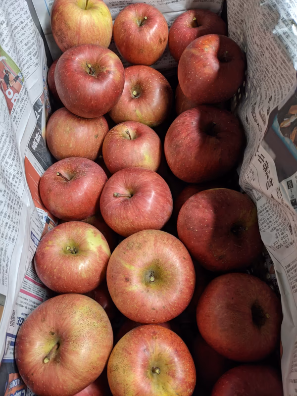 葉っぱの葉陰があるものも多くなっていますので、見た目は他のりんごに比べ少し劣ってしまうかもしれません。