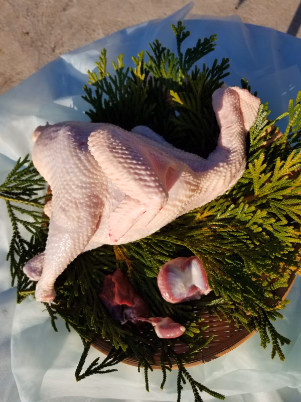 ▼自己紹介 本来、鶏は広々とした運動場で走り回って遊んだり、草をついばんだり、土をかぶったりして一日中動き回る生き物です。 鶏らしさを失わず、美味しい餌と白砂ヶ尾冷泉から汲み上げる美味しい水、鶏のためなら365日何が出来るか…不器用ですが、 それを18年続けてきました。 新型コロナの影響で、事業所からの注文が 0になってしまいました。 田舎者で、このような形での販売に対して 心臓がドキドキしていますが、何事にも挑戦だという思いと全国の皆さんにみやざき地頭鶏の美味しさを知ってもらいたいという想いで、お送りしたいと思います。 ▼商品概要 みやざき地頭鶏メス丸体(喉元の穴無し) ▼品種・味の特徴・食べ方 ローストチキン、参鶏湯に最適です。 ▼数量、分量の目安 丸体1羽総量1.8㎏前後です。 ▼栽培/生産方法、こだわり 生後150日(5ヶ月)から出荷が義務付けられているため その5ヶ月間を鶏らしく精一杯生きてもらうための努力は 厭わない気持ちで、毎日鶏舎に向かいます。 安心安全、ストレスフリーな鶏に育ってもらうには 鶏舎の清潔性、運動場の広さ、清潔で美味しい白砂ヶ尾冷泉から汲み上げる水、カロリー計算されている餌 それを徹底しております。 ▼注文に際しての注意点(配送方法や納期指定など) クール宅急便(冷蔵)にて配送となります。 納期の指定は、基本していませんが相談には応じます。