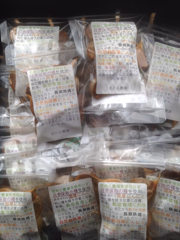 肥料、農薬不使用の自然栽培のにんにくを長期熟成させました。