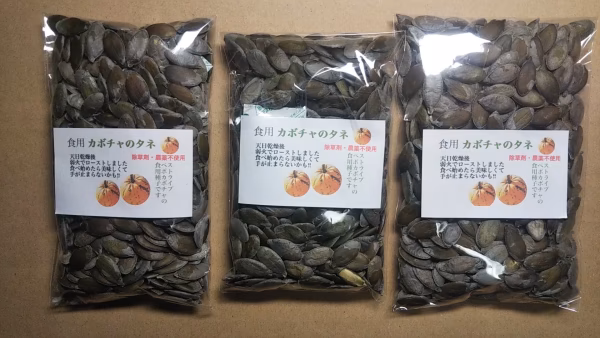 取り出した種子を天日乾燥しており、このまま美味しく食することができますが弱火でローストしてます。なまら(函館弁でものすごくと言う意味)❗️美味しくて手が止まらないかもしれません。