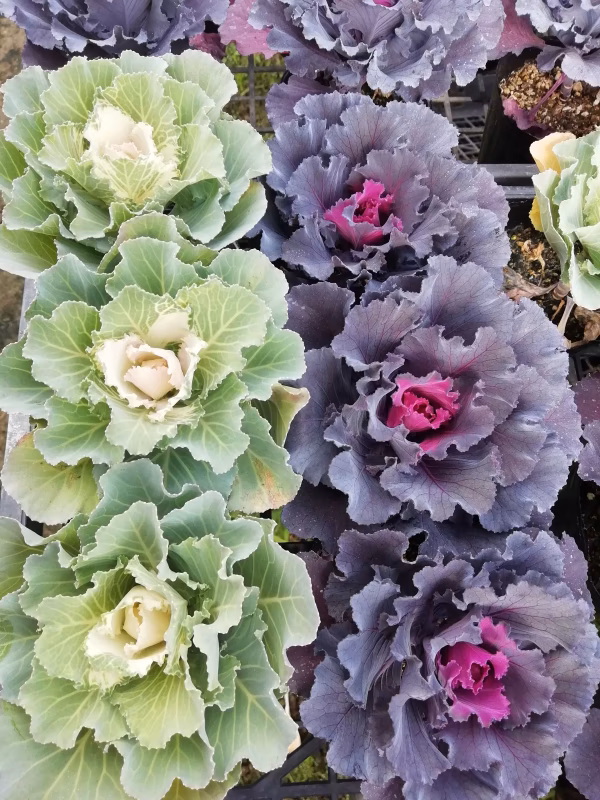 寒い期間、牡丹や薔薇のように花壇や寄せ植えで華やかに魅せてくれる葉牡丹