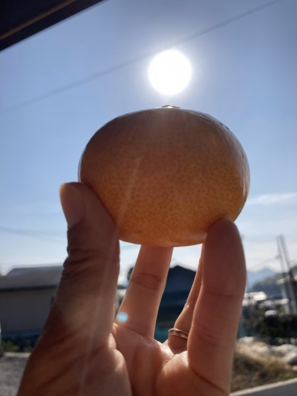 西田農園の園地は島の中でも南側にあり暖かく、園地も南から東に向きプラス傾斜地なので、太陽の光をたっぷり浴びた果実になっています。