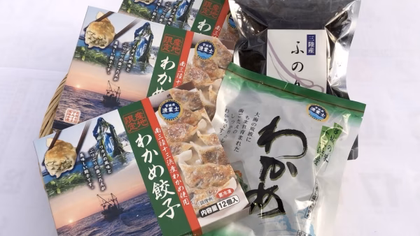 - ◎わかめ わかめ(宮城県産)、食塩 ◎わかめ餃子 野菜(筍、玉葱)、豚肉、わかめ、茎わかめ、片栗粉、醤油、ごま油、グラニュー糖、食塩、紹興酒、鶏がらスープ、胡椒、皮(小麦粉、澱粉、食塩) / 乳化剤、酒精、酵素、プロピレングリコール(一部に小麦・乳成分・豚肉・大豆・ごま・鶏肉を含む) ◎ふのり ふのり(宮城県産)