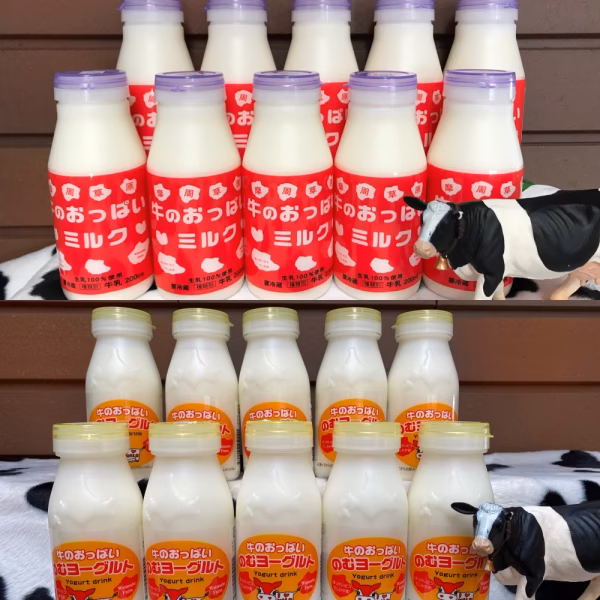 - 牛のおっぱいミルク 200ml×10本、のむヨーグルト150㎖×10本 冷蔵で10℃以下で保存 賞味期限 ミルク8日、ヨーグルト15日、