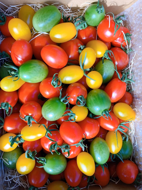 珍しいグリーンやイエロートマト、5種類、色とりどりのトマトギフトボックスに詰め込んだお品物です。見た目だけではなく香りや味の違いが楽しめます。 こちらの商品は小分けの袋ではなく直接お箱に詰めて発送致します。