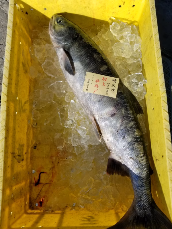 只今、水揚げされました神経〆天然秋鮭メスでございます。画像のとおりです!