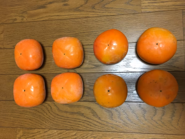 自分が主力として栽培しているのは渋柿です。脱渋したり渋柿にしたりして美味しく召し上がっていただけますが、悲しいかな柿といえば甘柿しかご存知ない方が多いのが実情です。そこで、少しでも脱渋柿の味を知っていただくために、甘柿との食べ比べセットを作りました。樹上脱渋した越前柿と甘柿をそれぞれ4個ずつセットにしてお届けします。どちらが美味いか、決めるのは貴方です。(写真右側の丸い柿が甘柿、左の四角い柿が脱渋した渋柿)