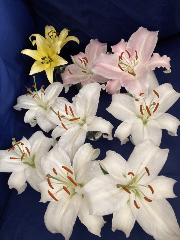 つぼみの状態でお届けします。ミックス色は、白、ピンク、赤、黄色のうち最低2色〜最大4色になります。お求め頂いた時に収穫している品種で発送しますので、色指定はお受けできません。どうしても欲しい色がある場合は、お問い合わせ下さい。発送期限と収穫予定を鑑みて、お待ち頂けるのであれば可能な限り対応します。リビング、ダイニング、玄関、レストルーム、キッチンに1本ずつといった飾り方もできます。到着〜開花まで1〜5日前後、開花後3〜5日程お楽しみいただけます。