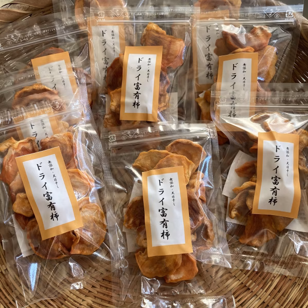 市川農園自慢の富有柿を一つひとつ丁寧に、種を取り除き、スライスし天日干しで乾燥させた「しっとり濃厚な」ドライ柿です。ついつい手が伸びてしまう病みつきになる味に仕上がっています。