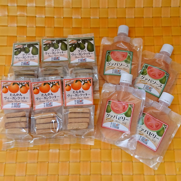 - グァバソース:グァバ、きび糖、レモン果汁 グァバゼリー:グァバ、きび糖、レモン果 汁、寒天 グァバヴィーガンクッキー:米粉、アーモンドプードル、屋久島産グァバ葉、片栗粉、ココナッツオイル、メープルシロップ たんかんヴィーガンクッキー:米粉、アーモンドプードル、屋久島産たんかん果皮、片栗粉、ココナッツオイル、メープルシロップ