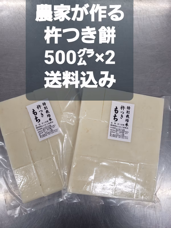 農家が作る 杵つき「かく餅」 農家がお米からこだわった「おもち」 名称    杵つき餅 材料    あゆみもち 内容量   500㌘×2袋 保存方法  直射日光を避けて保存 賞味期限  2年12月25日 製造責任者 「たっちゃん」 保健所の許可「菓子製造業」取得済