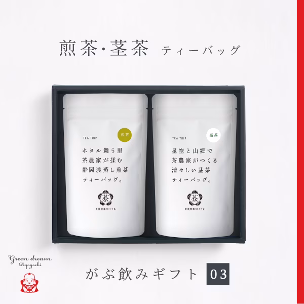 しずおか両河内、若手茶農家集団「ぐりむ」が仕立てる日常で楽しんで欲しい、がぶ飲み静岡茶より、ギフトセットが登場です!