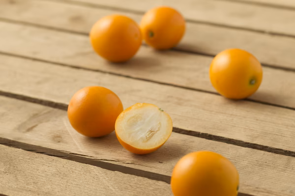 普通のきんかんとは違って「こん太」の表面はつるつるしていてまるでトマトのよう。