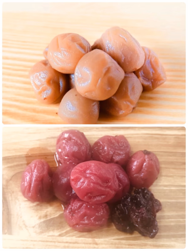 紅色の小梅を白色のご飯の上にのせることで