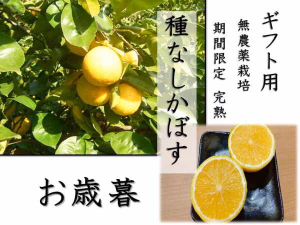 当園で【無農薬、肥料も使わず、除草剤不使用・防腐剤不使用】で丹精込めて作っている、この季節だけの「完熟種なしかぼす」を安心・安全と一緒に美味しさを大切な人にお届けさせていただきます。
