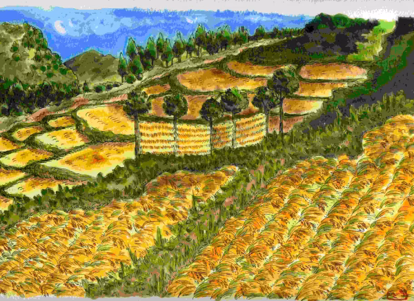 老夫婦が田植は2条式、稲刈りはバインダーと手刈、乾燥は天日干しで昔ながらの作業で作った米です。