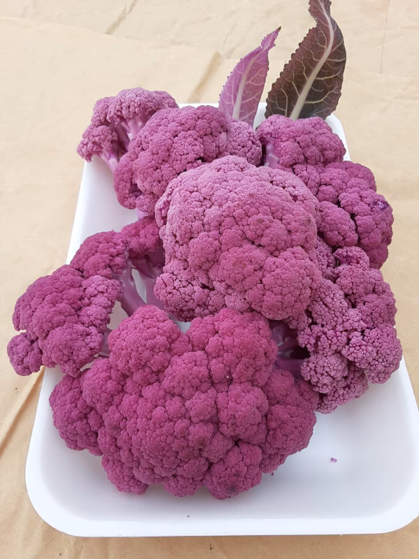 さっと茹でて、甘酢に入れると色鮮やかなパープルに変わります。