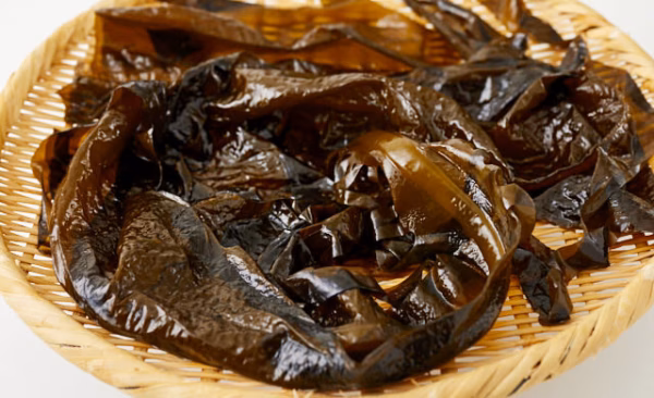 ⚫1月中頃から2月中頃までは養殖新芽ワカメ(1番切り)を味わえます。