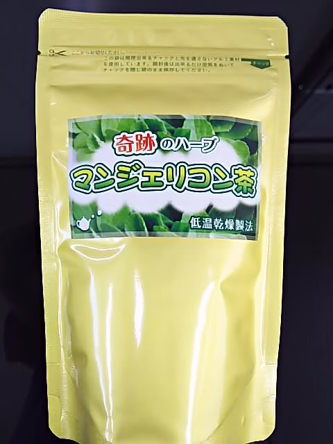 シソ科のハーブ、マンジェリコンのお茶です。50g入りの茶葉になっています。味は少しだけ、にがーい です。