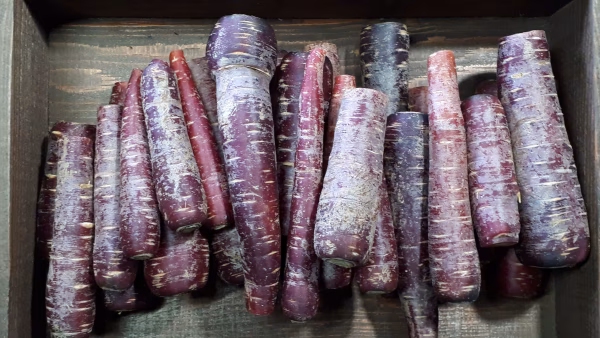 皮が紫で中身は黄色なので輪切りにすると彩りキレイな人参です。