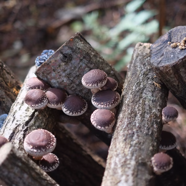 標高700メートルの山中で、自然の雨で育った原木シイタケ。菌床ものと違ってプリプリとした歯応えと香りです。焼いてよし、煮てよし。春と秋の短い期間だけの自然からの恵みです!