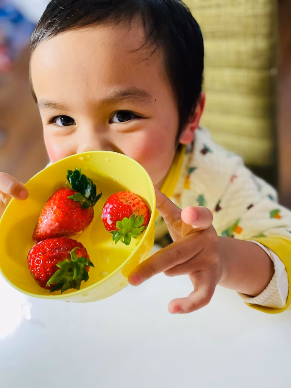 和歌山県オリジナルのいちご、まりひめはきれいな円錐形で甘みが強く程よい酸味があり、果汁たっぷりのジューシーないちごです。