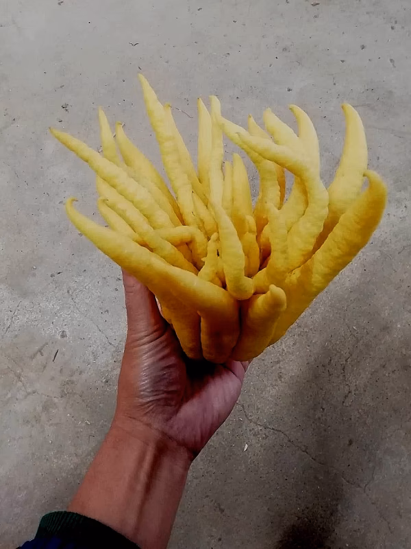 ブッシュカンは仏手柑と書くように、まるで指があるような変わった形の柑橘です。果肉はなく、中はすべて白い綿です。香りがとても良くトロピカルな匂いがします。飾りとして使われることが多いですが、マーマレードにして食べてみたところとても美味しかったので、ぜひお客様のアイデアで食べてみていただきたいです。今年が初出品のため、この複雑な形の果実が無事に届くかどうかも一緒に見てくださる方を募集します。