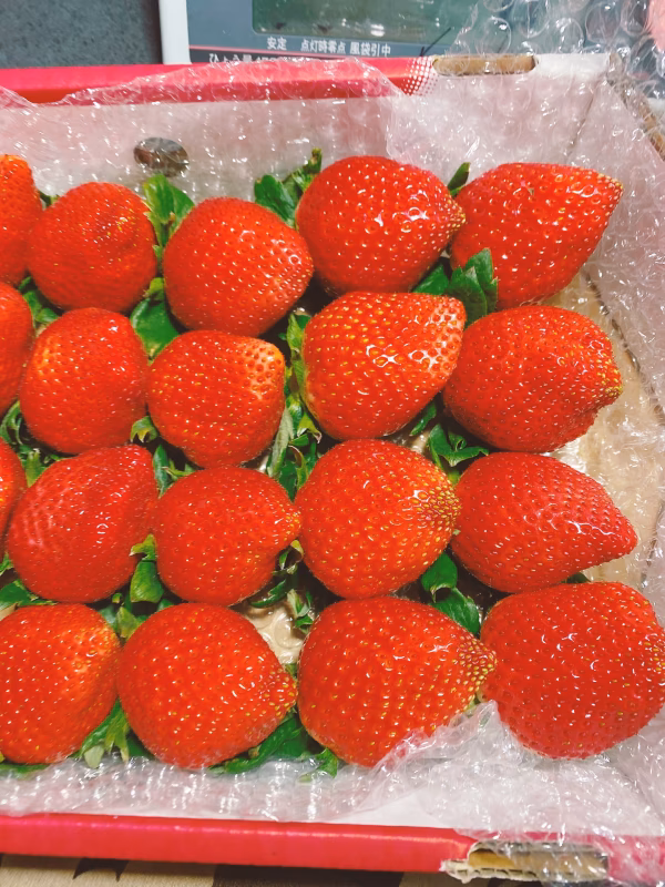 JA出荷基準より熟しているものもありますので、輸送中に揺れや振動で苺同士がぶつかりピンクや白っぽく変色することがあります。腐っているわけではありません。