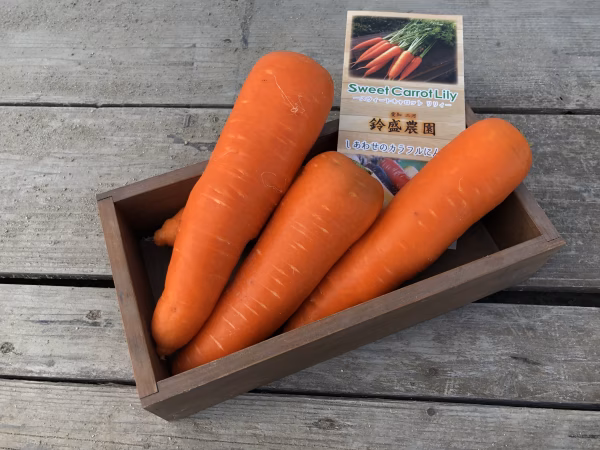 リリィの品種である碧南鮮紅(へきなんせんこう)は、あいちの伝統野菜のひとつで、100年前からこの地で育てられてきた在来種の人参です。濃厚な色とやわらかい人参の香りが特徴です!