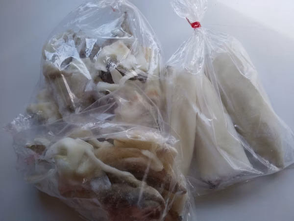 新鮮な紋甲イカを捌いて直ぐに超低温冷凍しています