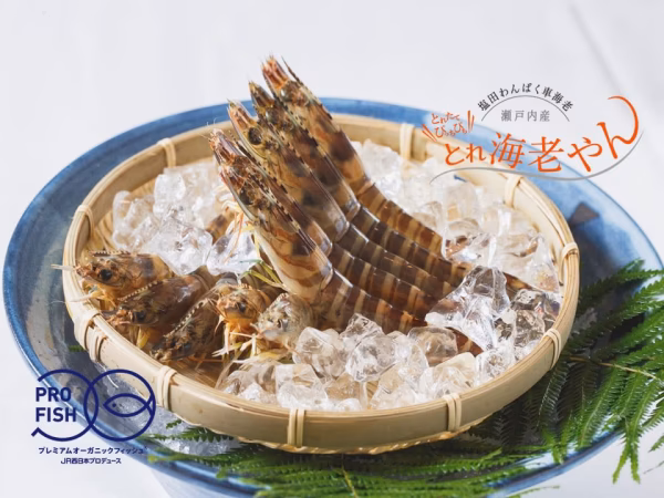温暖な瀬戸内の気候のもと、塩田跡の養殖池で自然ろ過された地下海水を使い低密度でのびのびと元気に育てた車海老。「とれ」たてで活きが良く、味や見た目が「とても素晴らしい(=フランス語の「トレビアン」)」車海老。こうした特長を踏まえつつ、親しみと愛着のある呼称を添えて「とれ海老やん」と名付けました。JR西日本の認証ブランド「PROFISH(プレミアムオーガニックフィッシュ)」の1つです。