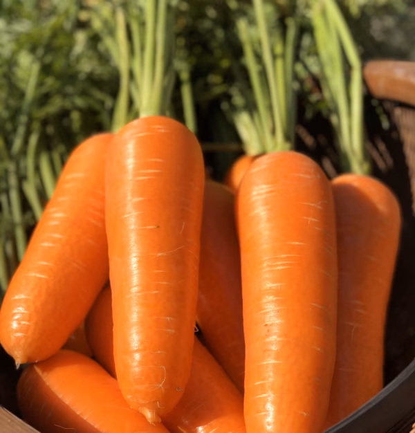 とうもろこしの栄養分とミネラルたっぷりの土で育ったにんじんは、ビタミンいっぱいで真っ赤っかに育ちます!