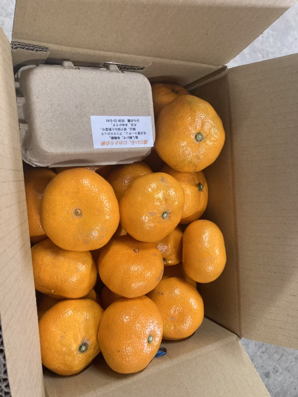 青島とオレンジの掛け合わせ品種、金賀ミカンです。濃厚な甘みと絶妙な酸味で大きなサイズでもしっかりと味があるのが特徴です。