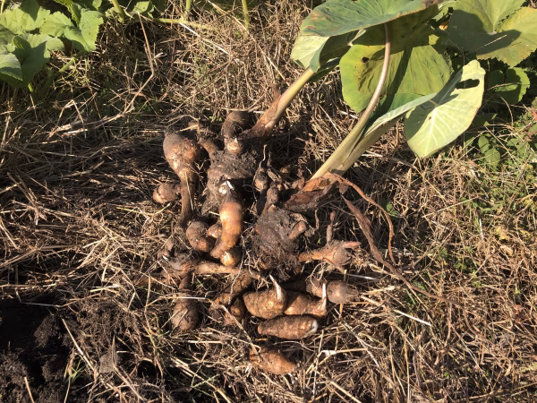 海老芋栽培は、夏の炎天下で作業しますのでとても大変ですが、そのぶん愛情たっぷり注いでいます。
