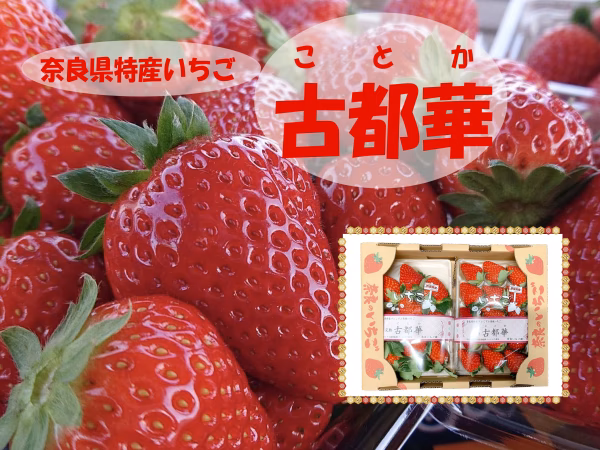 奈良県特産いちご"古都華"を朝採りし、新鮮なままクール便(冷蔵)で即日発送いたします。
