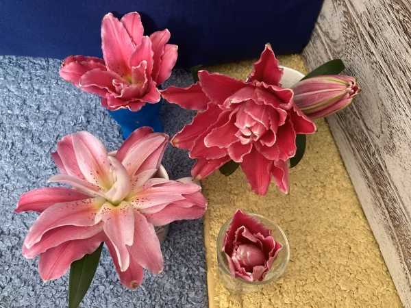 大きな花器がなくても、工夫すればご自宅の食器でも充分活けられます。つぼみの状態でお届けしますので、開花までの変化、花が咲いた時の美しさや香りをどうぞお楽しみください。