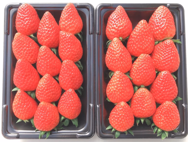 - 発送当日の朝に収穫しています。検品をしてキズの無いイチゴを出荷しておりますが、フィルムの接地面、イチゴ同士が当たっている面等は配送中の揺れによってキズがついてしまう場合がございます。あらかじめご了承ください。