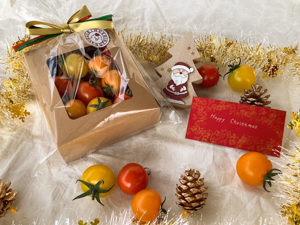 ▼イスラエル・ヨーロッパ系中玉・ミニトマト専門農園 2006年就農。50種類以上の海外品種の試作を経験し、イスラエル、オランダ、フランス、日本など各国の品種の中から味の個性を楽しんでいただける品種を厳選して栽培しています。 ▼自己紹介 栃木県宇都宮市でイスラエル・ヨーロッパ系中玉・ミニトマトを専門に栽培しております「絹島グラベル」です。子育て中のお母さんが働きやすいよう、子どものスケジュールに合わせたフレックス勤務の職場です。子どものようにトマトを看てくれるお母さんたちが育てたトマトです。 ▼品種・味の概要 ミニトマト「キャンディオレンジ」(オレンジ色のミニトマ) イスラエルの品種。オレンジのトマトは緑黄色野菜の味が強い傾向があるのですが、このキャンディオレンジは野菜の香りは弱めです。甘さは強めですが、野菜というよりも柑橘系に近い香りがします。酸味はほとんどありません。 ミニトマト「バラライカ」(黄色いミニトマト) イスラエルの品種。食感ではなく、味が柔らかいトマトです。甘みも酸味も柔らかく、味がぼやけているようにも感じますが甘みの主張はしっかりしています。ブドウや杏のような芳醇なアロマが長く残ります。 上の2種の他に、赤いミニトマトがランダムで1種入ります。(あやおり、グラナダ、CF小鈴などどれか1種) ※当園で使用しているトマトの呼称は、品種名と当園で名付けた商品名が混在します。 ▼商品概要・数量、分量の目安 3品種合計でとも約280gになるように小箱に箱詰めし、PP防曇袋でラッピングしたプチギフト小箱4個が大箱1箱入ったセットです。大箱1箱で合計約1120gになります。 箱に入っているトマトのみが商品になります。写真にありますモール、松ぼっくり、サンタの置物、箱の外のトマトなどは商品に含まれません。 ダンボール箱にバラで詰め、大箱が白く傷みやすいので、傷まないようにエアーキャップで梱包し、ガムテープで梱包します。大箱内の緩衝材はエアーキャップを使います。一般的にスーパーで販売されているミニトマトが170から200gなので、小箱1箱あたりミニトマトパック1~2パック分に相当します。完熟一歩手前で収穫しますので、お手元に届くころには完熟になります。25度以下常温保存で5日間、18℃以下冷暗所保存で7日間、冷蔵庫保存で10日間がお召し上がりいただける目安です。 ▼栽培概要 寒い日はマイナス10℃まで冷える鬼怒川の傍で地下水熱(ウォーターカーテン)を使用した越冬栽培作をメインに通年栽培しています。ウォーターカーテン栽培は暖房機、ヒートポンプの使用時間を極限まで短縮することができるため、排出CO2を削減できる半面、厳寒期の温度管理がシビアになるため、トマトに(特に根に)大きな温度ストレスがかかります。当園ではその温度ストレスを食味向上の要素として肯定し、他の環境ストレス、特に水分ストレスをAI自動灌水システムを採用することにより排除したストレスコントロール型の栽培を行っております。鬼怒川近く(氾濫原)の極端な砂目土壌での土耕栽培です。 ▼注文に際しての注意点(配送方法や納期指定など) 栃木から発送いたします。お届け先によっては発送翌日配達ができない地域がございます。 こちらの商品に関しては現在収穫日が限られます。発送は火曜、木曜、土曜のみとさせていただきます。 受け取りに都合の良い出品をご利用ください。発送日内での時間指定は可能ですのでご利用ください。 ・ご注文日が土、日、月曜日の場合→火曜日発送 ・ご注文が火、水曜日の場合→木曜発送 ・ご注文が木、金曜日の場合→土曜発送 基本的に発送日に収穫したものをお送りします。稀に天候不順などで発送日前日収穫のものが混ざることもあります。 その他ご希望がありましたらお伝えください。可能なかぎりお答えしたいと思います。 【年末年始の営業に関しまして】 年末年始の出荷に関しまして、下記のようにさせていただきます。 年内最終出荷日 12月29日(火) 出荷休み 12月31日(木) 1月2日(土) 年始初回出荷日 1月5日(火) 12月28日20時以降のご注文は、年始の1月5日以降の発送になります。 【年末年始の配送に関しまして】 年末年始は配送がたいへん混雑いたします。一部地域ではご希望の日時に商品が配達できないケースが発生しています。当方といたしましては、お客様のご希望どおりの配達希望日時で発送致しますが、諸般の事情により、ご希望の配達日時通りに商品が届かない可能性がございます。何卒、ご理解のほどよろしくお願いいたします。