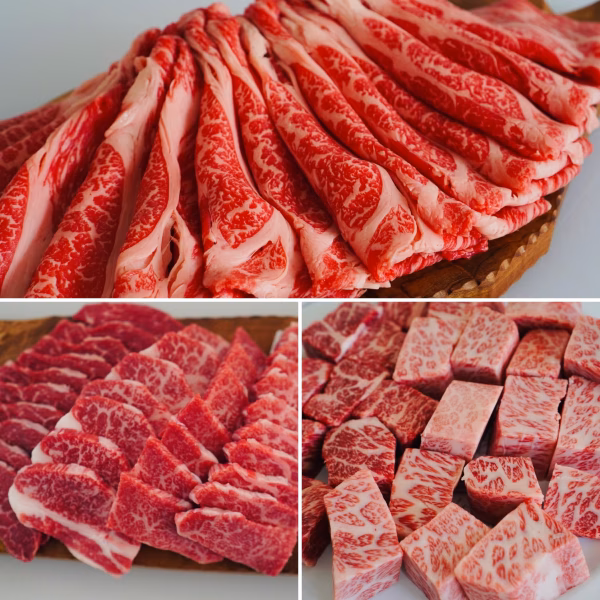 カタ、モモ、バラの様々な希少部位をサイコロステーキカットでご用意致します。