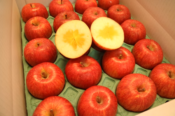 果汁が豊富なうえ、しっかりとした甘味と程よい酸味のバランスがとても良いりんごです。