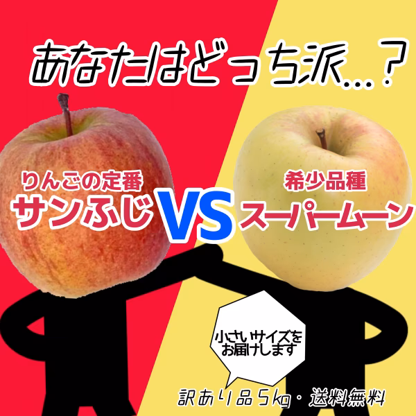 本商品は、小さいサイズの「スーパームーンりんご」と「サンふじりんご」、両方を楽しむことができるお得なセットです。それぞれのりんごにそれぞれの良さがあるのでぜひ食べ比べてみてください♪