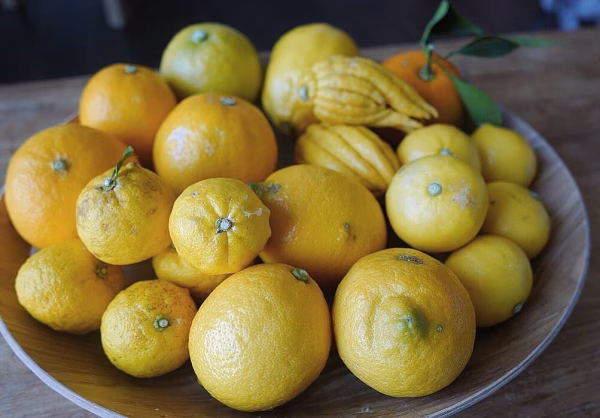 いろんなレモン、バレンタインライム、ベルガモット、柚子、橙、ブッシュカン、葉っぱ。