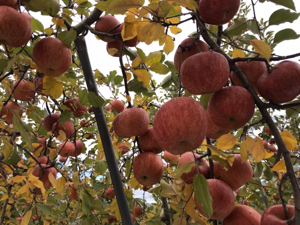 信州の朝晩の寒暖差のある里山で、美味しいサンふじが出来上がりました。😊