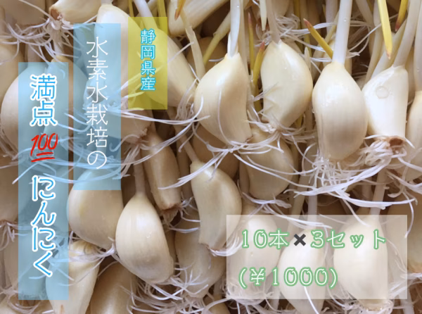 こんにちは、【発芽にんにく工房『あとりえアイユ』】と申します。わたしたちは、静岡県藤枝市にて、水素水栽培で「満点にんにく」を育成しています。