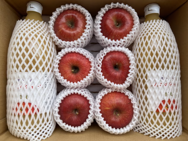 完熟サンふじとサンふじを使用した果汁100%ジュースのセットです!